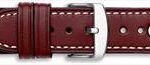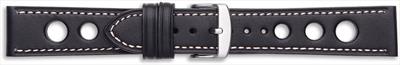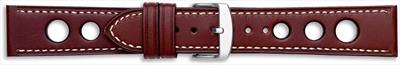 Racingband i kraftigt kalvläder. Finns i 18, 20, och 22 mm bredd i brunt med vit söm samt svart med vit söm (se modell 687A). Längd: 7,5 x 11,5 cm. Tjocklek: 4 mm. OBS! Endast 1 st svart med vit söm + 1st. brun med vit söm 18 mm finns kvar i lager!!